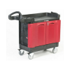 Gabinete y estación de trabajo móvil con 2 puertas TradeMaster®. Transporte y desarrolle todo tipo de tareas en cualquier sitio. Manijas ergonómicas proporcionan maniobrabilidad fácil y confortable. Compartimientos moldeados en la repisa superior ideales para guardar todo tipo de implementos. Canal moldeado en el perímetro de la repisa superior. El estante superior abierto de frente permite fácil acceso a la superficie de trabajo. Posee ruedas de 10,2cm de diámetro que no dejan marcas, 2 ruedas giratorias con mecanismo de bloqueo. Las puertas del gabinete abren 270º para facilitar el acceso.